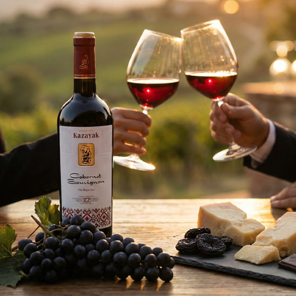 Cabernet Sauvignon is a dry red wine of deep ruby colour, showing a confident, classic style. Its elegant, concentrated aroma brings blackcurrant, dark berries and ripe fruit, lifted by a hint of sweet spice. The palate is layered and smooth, with flavours of ripe red fruits and a touch of vanilla. Velvety tannins give structure without harshness, leading into a long, warming finish. This is a wine made for special moments, instantly adding a festive, refined mood to the table. Serve at 15–18°C to let the bouquet and texture fully open.
