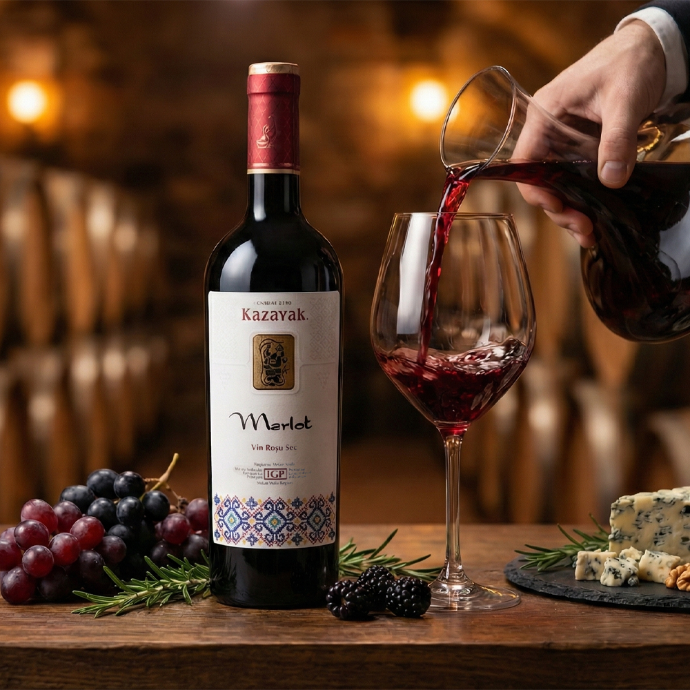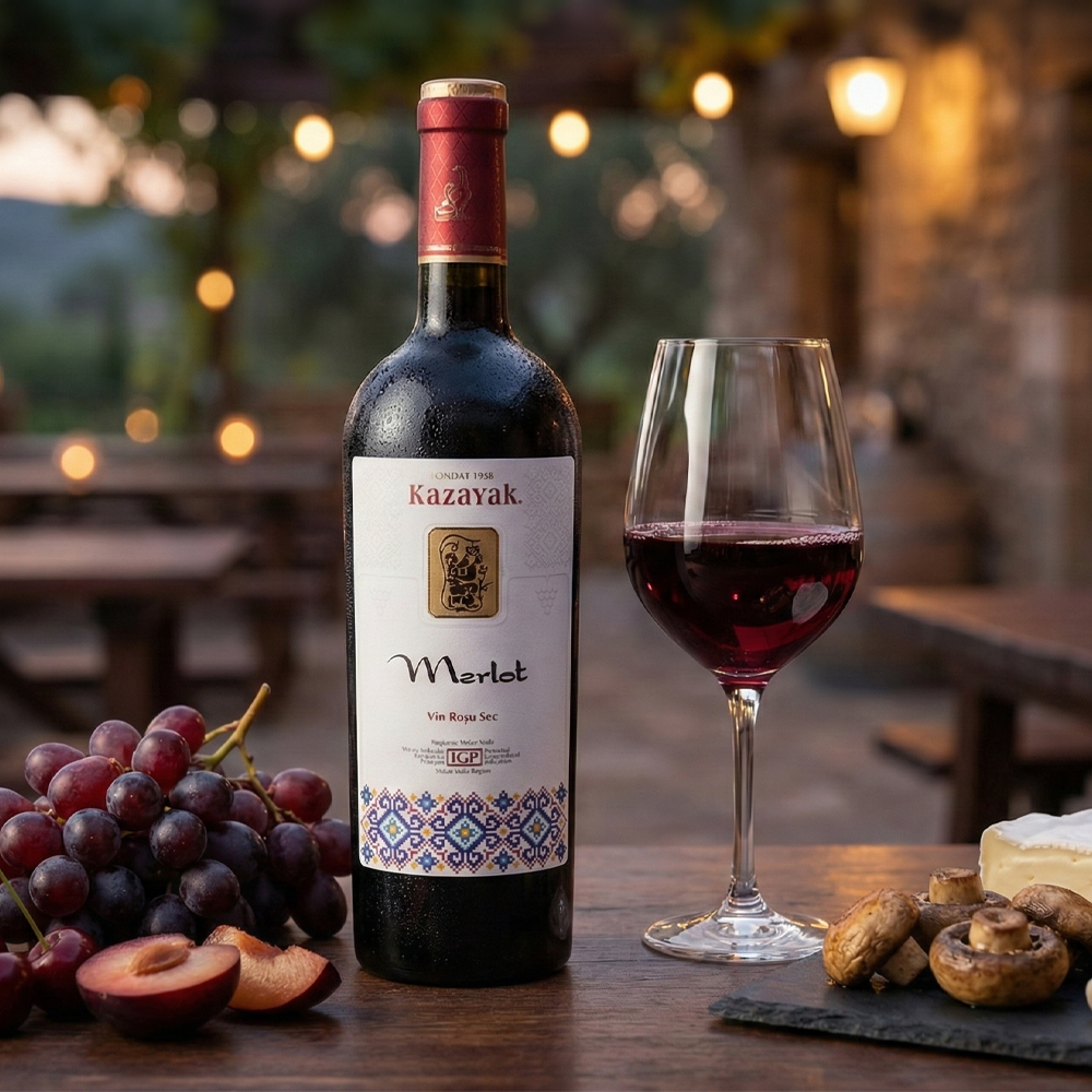 Merlot is a dry red wine with a bright ruby-red colour and a smooth, approachable character. The bouquet is pleasantly complex, led by ripe cherry with subtle darker-fruit nuances. On the palate it feels velvety and rounded, with well-integrated tannins that add gentle structure. Cherry flavours carry through into a long, elegant finish, touched by hints of dried spices. The overall style is balanced and refined, making it easy to enjoy yet quietly sophisticated. Serve at 16–18°C to bring out its full aroma and silky texture, perfect for special occasions or a polished dinner.